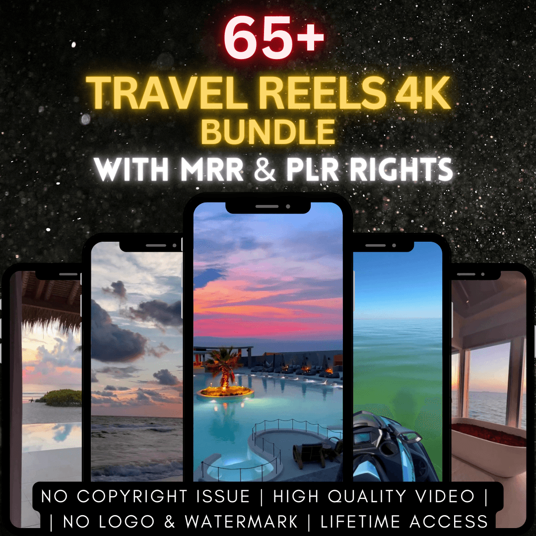 Transport your audience to the most stunning destinations with our 65+ Faceless Travel Reels Bundle—a collection of high-quality, faceless travel videos designed to capture the essence of adventure and exploration. Perfect for influencers, travel bloggers, digital marketers, and entrepreneurs, these reels are crafted to highlight the beauty of travel without needing a face in the frame. With full Master Resell Rights (MRR), Private Label Rights (PLR), and customizable Canva templates, this bundle offers endless opportunities to elevate your brand or resell for profit.